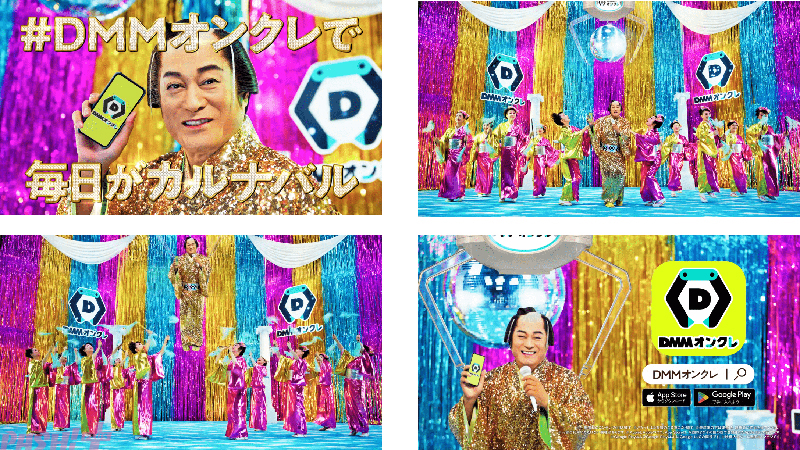 今回の新CMは「毎日がカルナバル」篇と題し、場所と時間を問わずにプレイできる「DMMオンクレ」の楽しさを、華やかなセットや衣装、そして松平健さんの歌とダンスによって表現しています。松平健さんの豊かな表情や軽快でコミカルな動きに注目です。