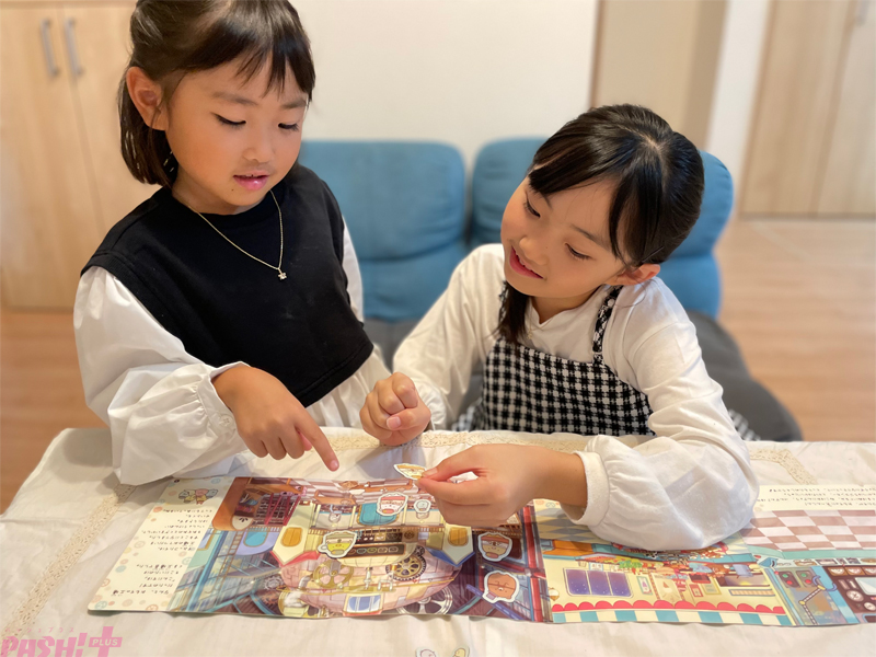 映画のシーンはぜんぶで5つ入っています。工場の中や、すみっコたちの大好物がずらりと並んだ食堂の場面も! それぞれのページに合ったすみっコたちのマグネットピースを貼るだけで、自分だけの絵本を完成させることができます。
