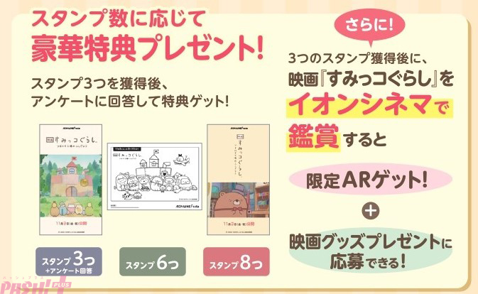 さらに、スタンプを3個集めて映画「すみっコぐらし」をイオンシネマで鑑賞すると、キャラクターを撮影できる「イオンシネマ限定AR」が獲得できます。さらに、抽選で「すみっコぐらし」の映画グッズが当たるプレゼント企画にも応募できます。