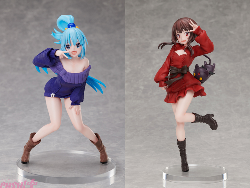 胸の谷間や太ももを強調するセクシーなニットスタイルで悩殺! アニメ『この素晴らしい世界に祝福を!3』アクアやめぐみんの新作プライズ登場