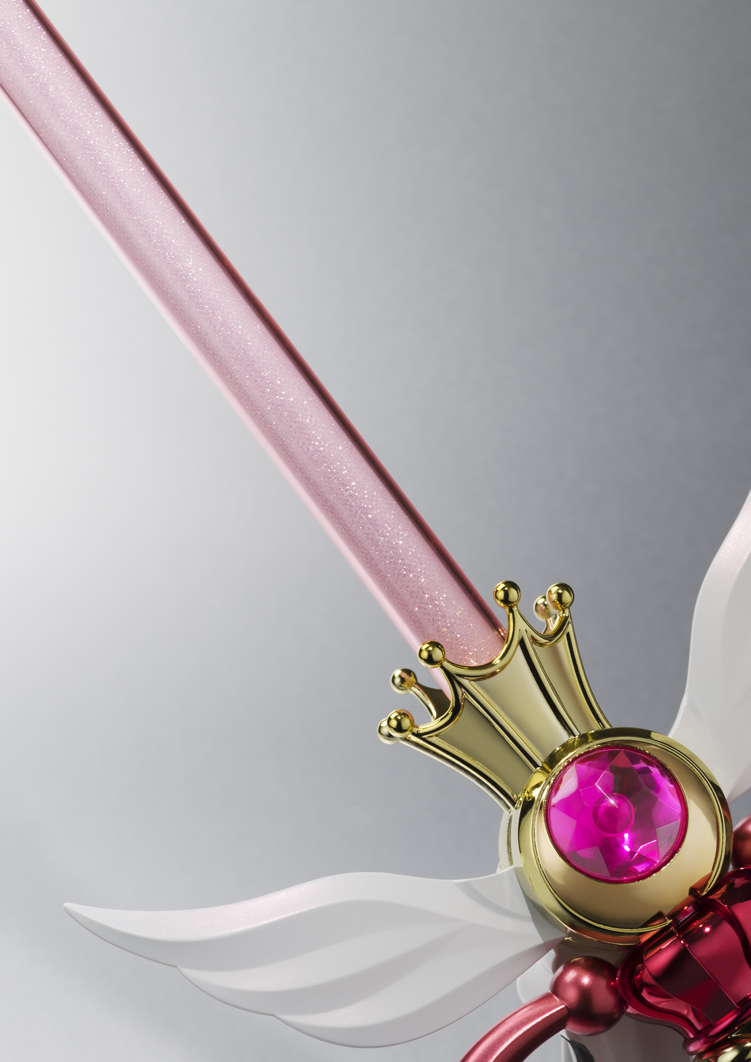 スティックの付け根と先端の2カ所に、虹色に光る多色発光LEDが使用されているので、劇中シーンの美しい発光グラデーションを再現することができる。加えて、ワンプッシュで開く羽根の中央にも、ピンク色に点滅発光するLEDが使われている。