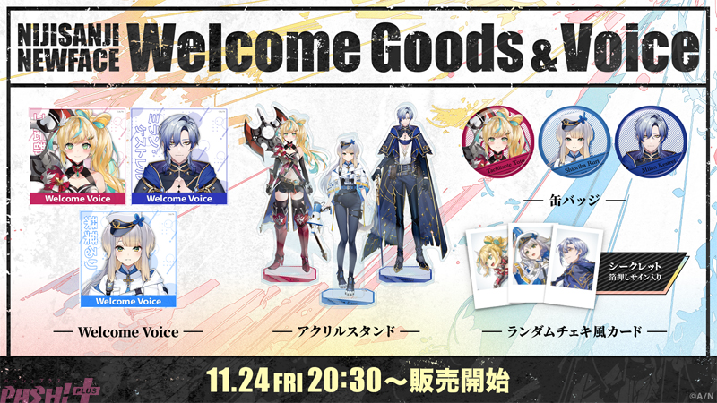 デビューを記念して「Welcome Goods&Voice」が2023年11月24日(金)20:30からにじさんじオフィシャルストア、NIJISANJI EN Official Storeにて販売開始となります。