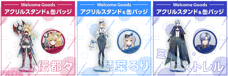 「にじさんじ」より、立伝都々(たちつてとと)、栞葉るり(しおりはるり)、ミラン・ケストレルがデビュー。初配信終了後、デビュー記念としてにじさんじオフィシャルストア・NIJISANJI EN Official Storeにてアクリルスタンド、缶バッジ、ランダムチェキ風カード、ボイスが販売されます。
