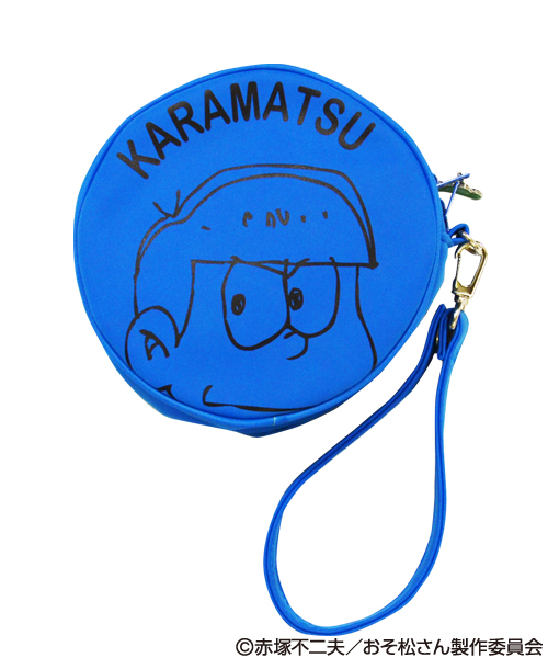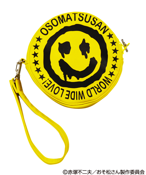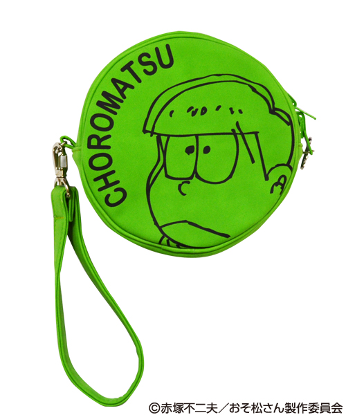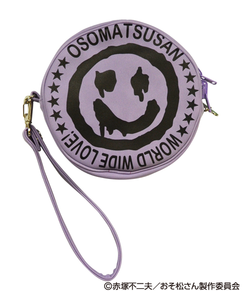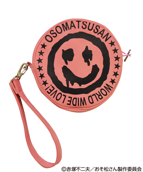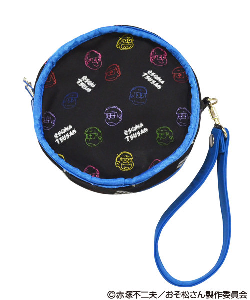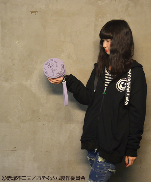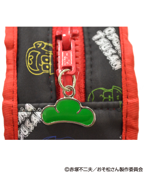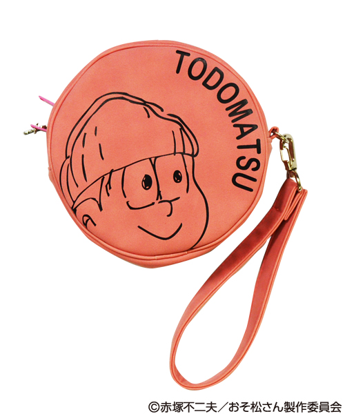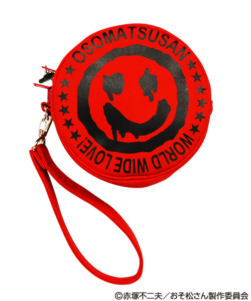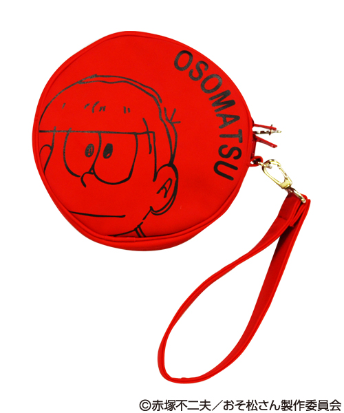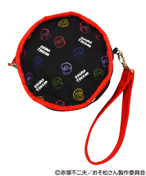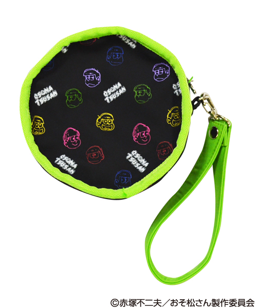 ポーチはフェイクレザーを使用した丸い形のデザインで、広めのマチがついて収納しやすいのがポイント。また、このポーチはリバーシブルになっており、裏返すと6つ子全員が集合したカラフルな絵柄が現れるので、気分によって変えられる楽しい仕様だ。