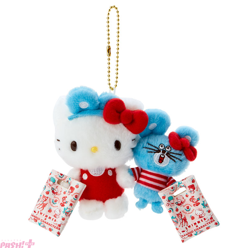 商品は、サンリオのキャラクターたちが「SWIMMER」のねずみ、うさぎ、くま、パンダのお友だちとお揃いのつけ耳と、ショッパーをもってお買い物を楽しんでいる特別デザインのマスコットをはじめ、デザインが楽しめるフラットポーチセット、巾着セット、エコバッグ、ペーパー&袋セット、A5ファイルセット、シールセットをラインナップ。