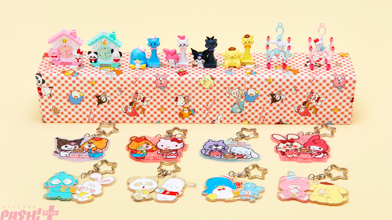 デザインは「ハローキティ」「マイメロディ」「ポムポムプリン」「シナモロール」「クロミ」「ポチャッコ」が、「SWIMMER」の世界の中でキャラクターたちと遊んでいる様子を描いています。シールやシークレットアイテムには、「バニー&マッティ」「タキシードサム」や「ハンギョドン」のデザインも登場します。