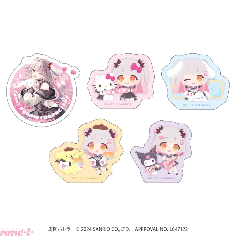 ロングとショートの髪型チェンジにも要注目! 等身イラスト&ミニキャラの新作グッズには、小悪魔系衣装の周防パトラとハローキティ、シナモロール、クロミ、ポムポムプリンが超キュートに登場です!!