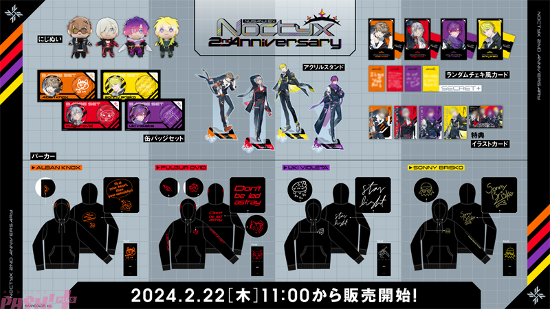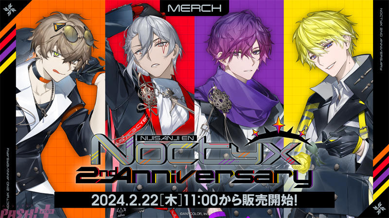 ANYCOLORが運営するVTuber / バーチャルライバーグループ「NIJISANJI EN」は、2024年2月22日(木)11時(JST)よりVTuberユニット『Noctyx』のデビュー2周年を記念して「Noctyx 2nd Anniversary」の販売を開始します。