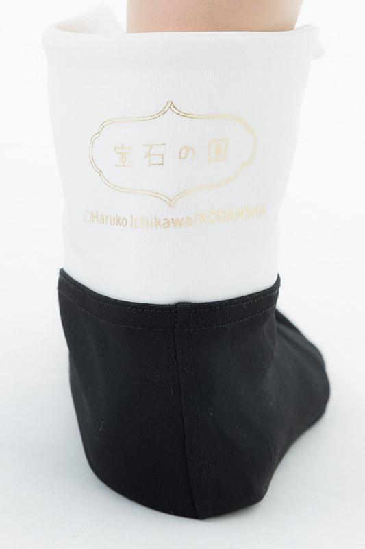 今回販売となるのは、パンプス、ブーティに加え、エリマキソックスの全3アイテム。作中で宝石たちが実際に履いている靴をモチーフに、作品独自の美しい世界観が表現されている。黒をベースとして、宝石に見立てられたビジューがポイントとなっているシューズは、これからの冬コーデにきっと栄えるはず。流行の襟付き靴下と合わせて、寒い時期も足元から華やかにしてみてはいかが♪?