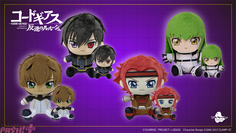 これまで約50種類をリリースしてきた当社の看板アイテムであるおすわるぬいぐるみシリーズに、大ヒットアニメ「コードギアス 反逆のルルーシュ」が加わります。主役級の4キャラクターを取り揃え、それぞれ以下の2サイズをご用意しました。