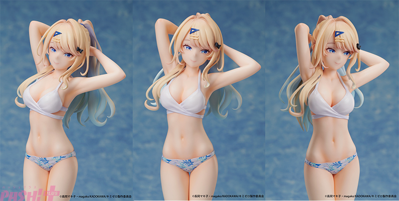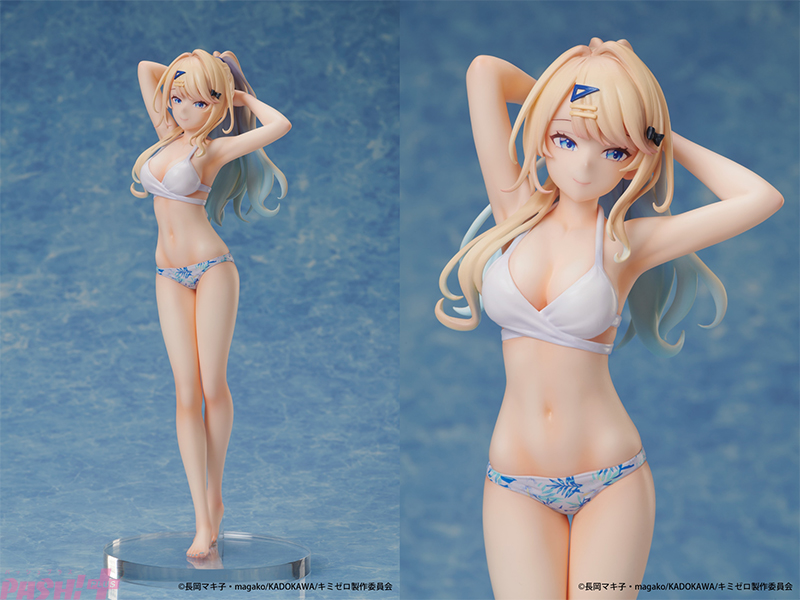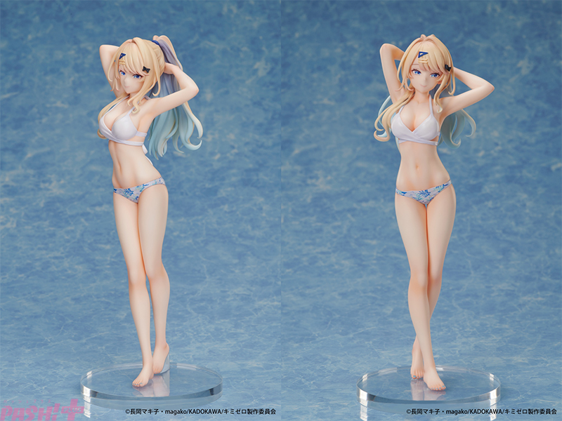 本作のヒロインのひとり・白河月愛が水着衣装を纏った精巧なスケールフィギュア『経験済みなキミと、経験ゼロなオレが、お付き合いする話。1/7スケールフィギュア 白河月愛(全長:約20cm)』が登場。8月展開予定です。