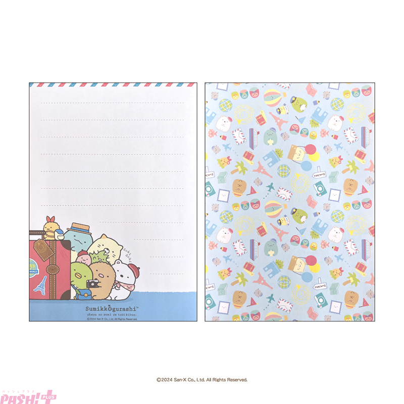 本商品は「すみっコ」たちが描かれたフレーム切手(切手デザイン4種)と封筒、便箋、シーリングワックス風シールのセットです。
