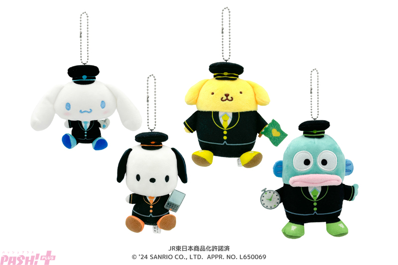 車掌さんスタイルの服装で、ホイッスルや端末、時計、旗を持っていて、お仕事をしている様子がとっても可愛い。お好きなキャラクターを手に入れて、バックやリュックに付けて一緒にお出かけしよう。