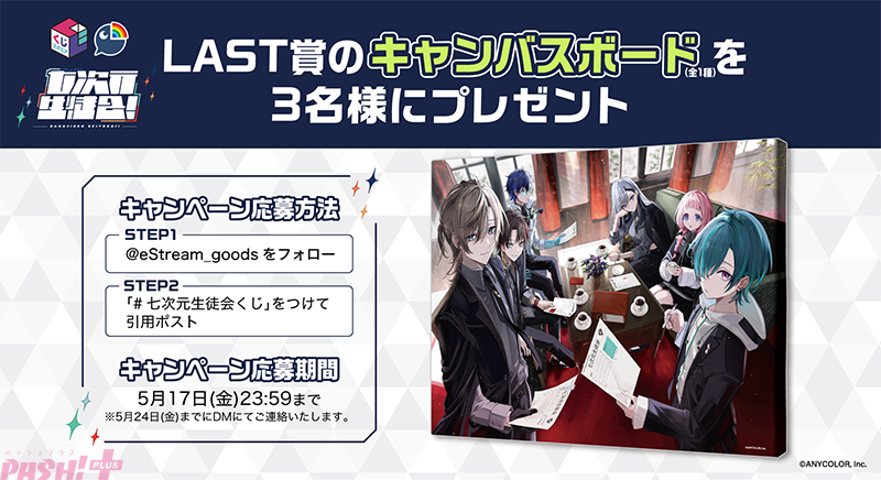 eStreamグッズ公式公式X(旧Twitter)をフォローシテ、該当ポストを引用ポスト(「#七次元生徒会くじ」を付けて投稿)することで参加できます。