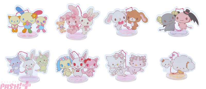 マスコットホルダーには、シュガーバニーズ、ルロロマニック、チャーミーキティ、ジュエルペット(ルビー)、ウィッシュミーメル、ぼんぼんりぼん、リトルフォレストフェロォ(めろぉ)、まるもふびより(もっぷ)、がおぱわるぅ、ぺたぺたみにりあん(ぱお)が登場。何が出るかお楽しみのシークレットアクリルスタンド(Aパターン、Bパターン、各8種)にはマスコットホルダーで登場するキャラクターをはじめ、全部で16キャラクターをラインナップしお楽しみ度もアップ。アクリルスタンドとして飾ることのほか、アクリルキーホルダーとして持ち歩きもできる仕様です。