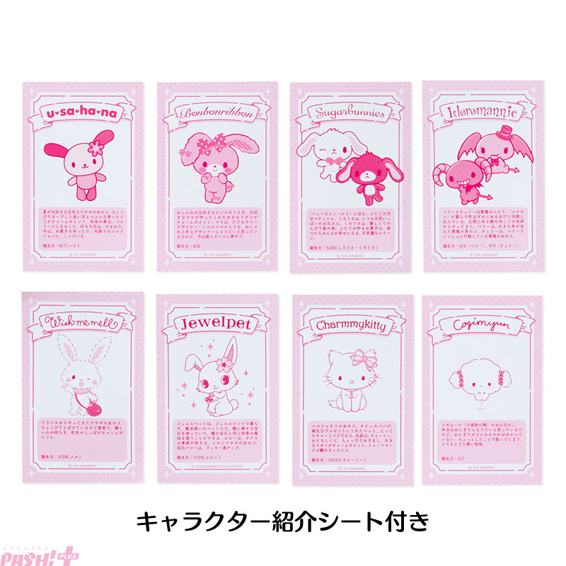 キャラクターラインナップ:シナモロール、ウサハナ、ルロロマニック、シュガーバニーズ、ジュエルペット、チャーミーキティ、ぼんぼんりぼん、ウィッシュミーメル、こぎみゅん
