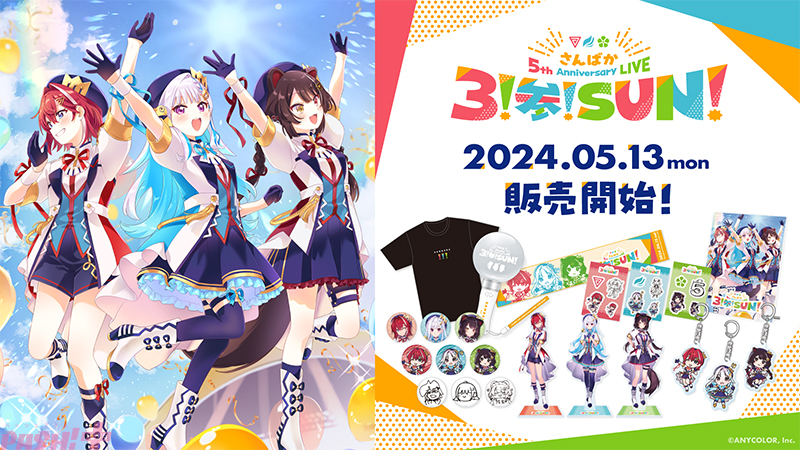 ANYCOLORが運営するVTuber/バーチャルライバーグループ「にじさんじ」は、「さんばか 5th Anniversary LIVE ~3!参!SUN!~」グッズの事前販売を2024年5月13日(月)正午からにじさんじオフィシャルストアにて開始します。