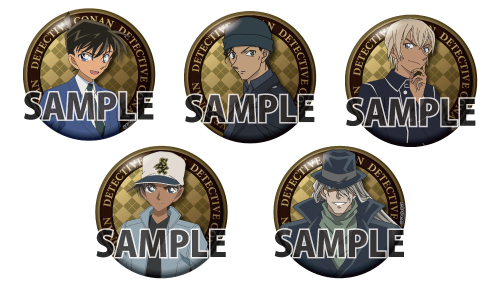 新一・平次・赤井・安室・ジンの5種類! この缶バッジのイラストを読み取るとキャラクターのパーツが現れる