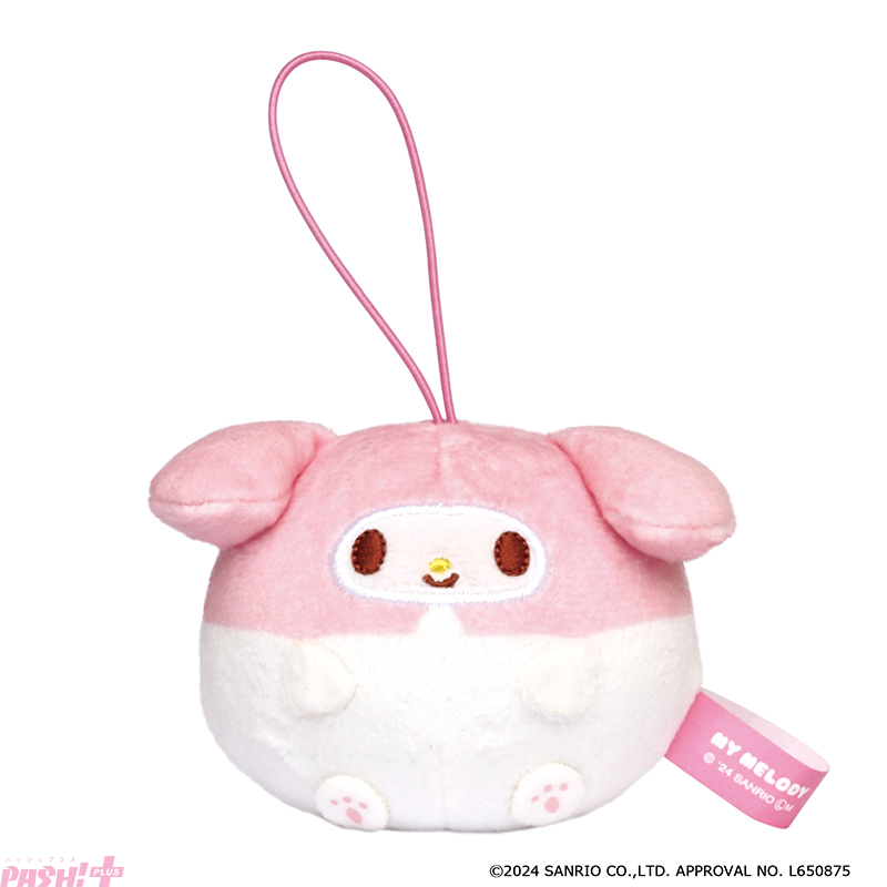 ゴム紐が付いているので、カバンに付けたり、並べて飾ったり使い方色々。ふにゅっとした優しい感触と、丸々したフォルムに癒されます。可愛いサンリオキャラクターたちと一緒にお出かけしてみては?