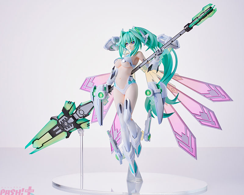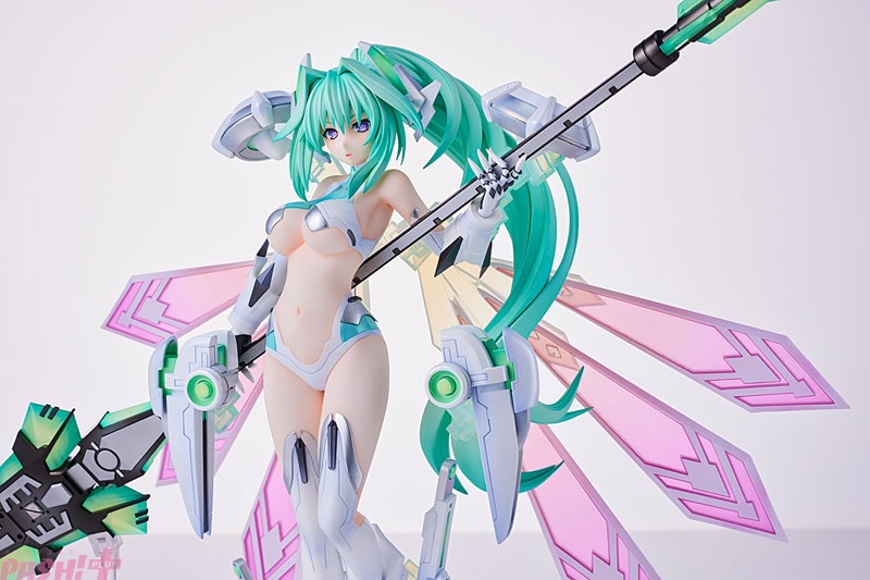 長く巨大なランスを構えたポーズにて、女神化姿を立体化。クールな表情や美しい緑の髪、美しい迫力のボディライン等、グリーンハートの姿を丁寧に再現しています。