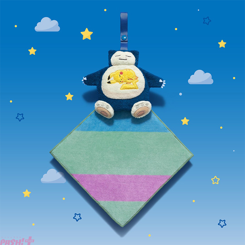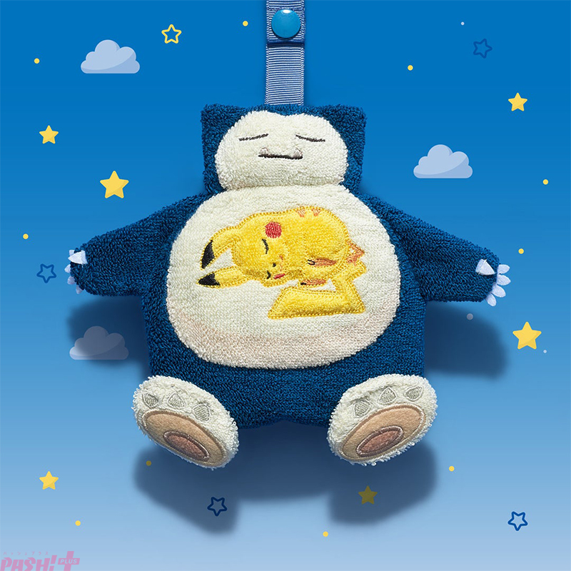 タオル イン ポーチは、『ポケモンスリープ』で、ピカチュウがカビゴンのおなかのうえで眠る「おなかのうえ寝」がモチーフとなっています。タオル部分はカビゴンの背中部分に収納することができ、ボタン付きのストラップが付いており、様々な場所に取り付けられます。