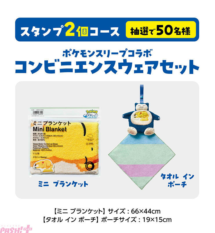 コンビニエンスウェアで初となるポケモンとのオリジナルグッズが登場します。ミニ ブランケットには『ポケモンスリープ』の「まるまり寝」のピカチュウがデザインされており、ブランケットのサイズはピカチュウ等身大のサイズです。お昼寝のお供や、少し大きめのタオルとしてお使いいただけます。