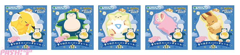 期間中、対象商品を2個同時に購入すると、ポケモンスリープ香り付きペーパーチャームがもらえます。チャームはピカチュウ、カビゴン、トゲピー、ヤドン、イーブイの全5種類です。