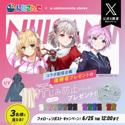 【にじさんじ】家長むぎ・える・夕陽リリが夏服コーデのガチンコバトル! イーザッカマニアストアーズコラボ配信実施&プレゼントキャンペーンが開催中