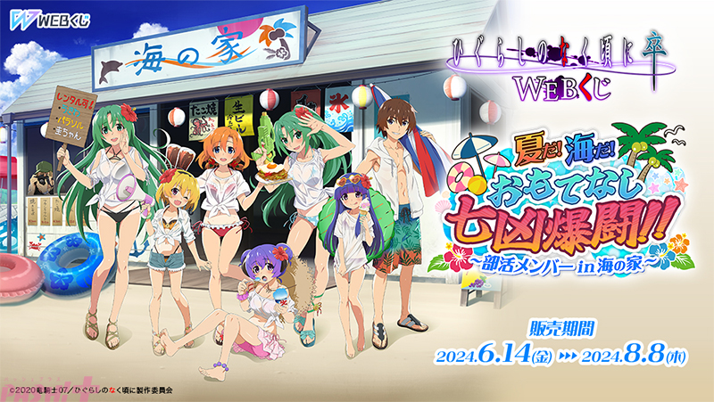 ディ・テクノは、2024年6月14日(金)より『ひぐらしのなく頃に 卒 WEBくじ『夏だ!海だ!おもてなし七凶爆闘!!~部活メンバーin海の家~』』の販売を開始しました。