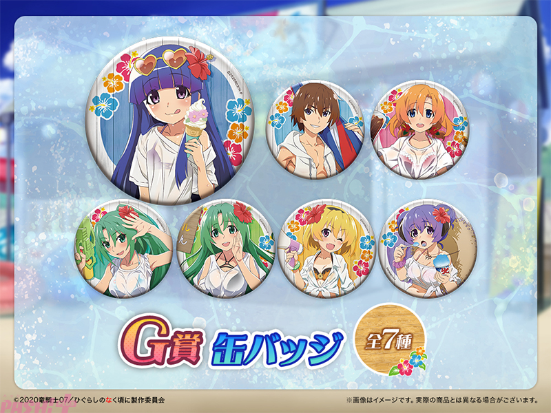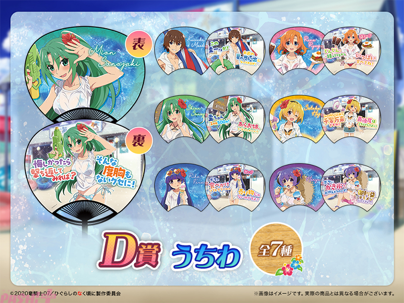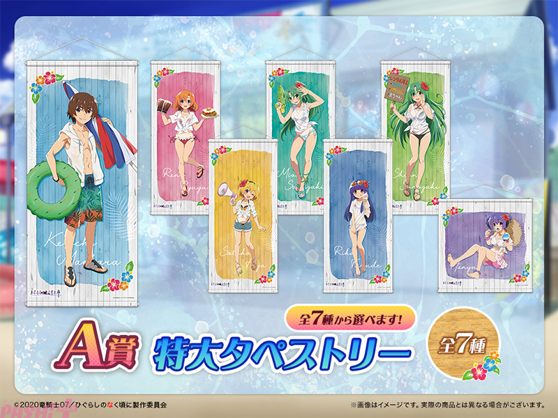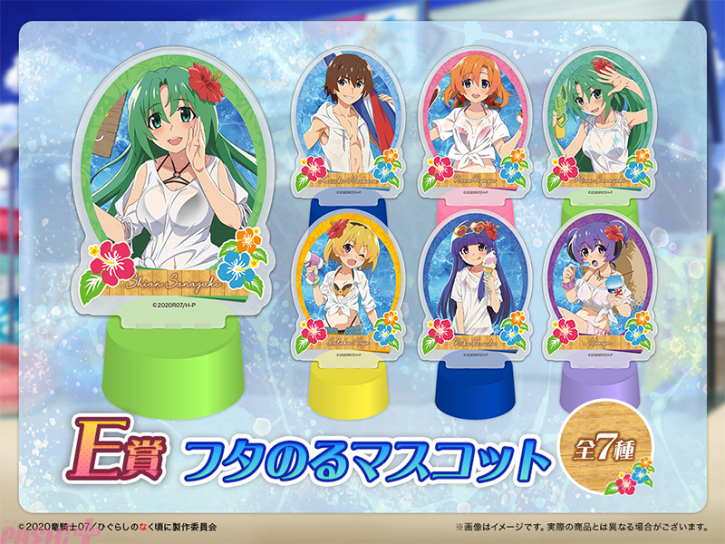 海の家スタイルで美脚をアピール! アニメ『ひぐらしのなく頃に 卒』描き下ろしタペストリーやアクスタが当たるWEBくじが発売