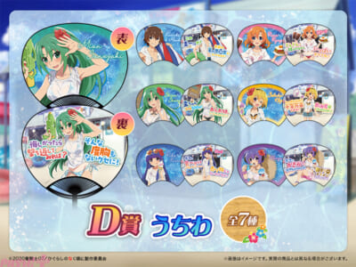 A賞は描き下ろしイラストを大きいサイズで楽しめる特大タペストリー、B賞はメインビジュアルにも使用した集合イラスト柄のBIGバスタオル、季節的も実用的にもベストアイテムで、キャラクターのセリフもついたD賞のうちわなど豪華グッズ盛りだくさん。そして集合イラストグッズにはあの人物が……! ぜひお楽しみください。