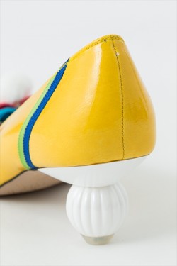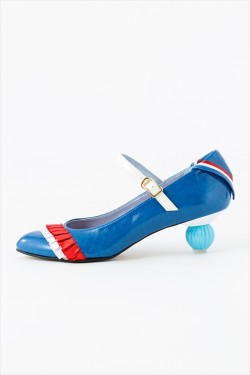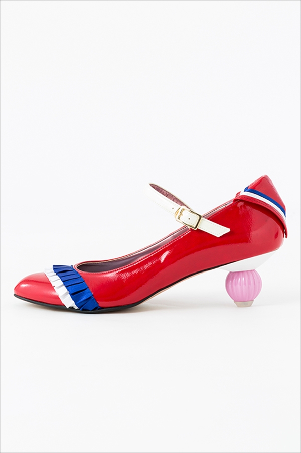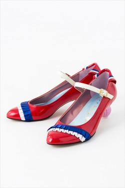 ドロシーのサイリウムコーデをイメージしたパンプスです。衣装のプリーツ部分をメインモチーフにし、セーラー襟をかかとに再現しました。