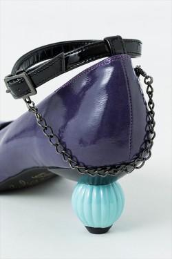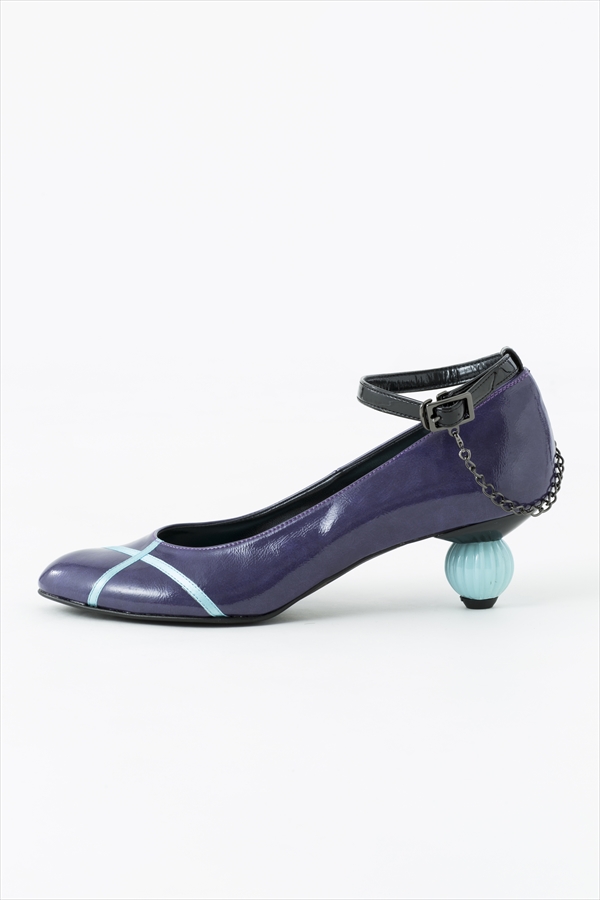 シオンのクールなサイリウムコーデを足元に再現。特徴的なチェーンパーツは脱着可能です。つま先部分のサテンリボンをワンポイントにしました。