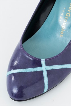 レオナのサイリウムコーデをイメージしたパンプスです。衣装のプリーツ部分をメインモチーフにし、セーラー襟をかかとに再現しました。