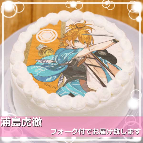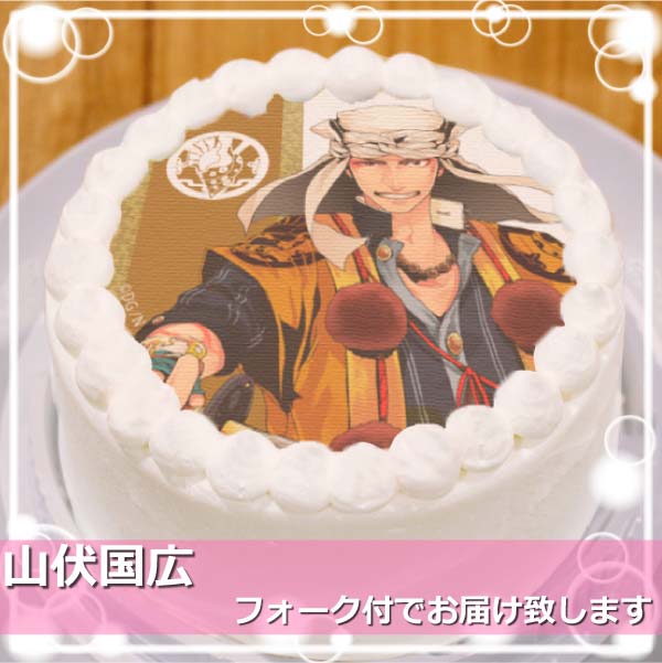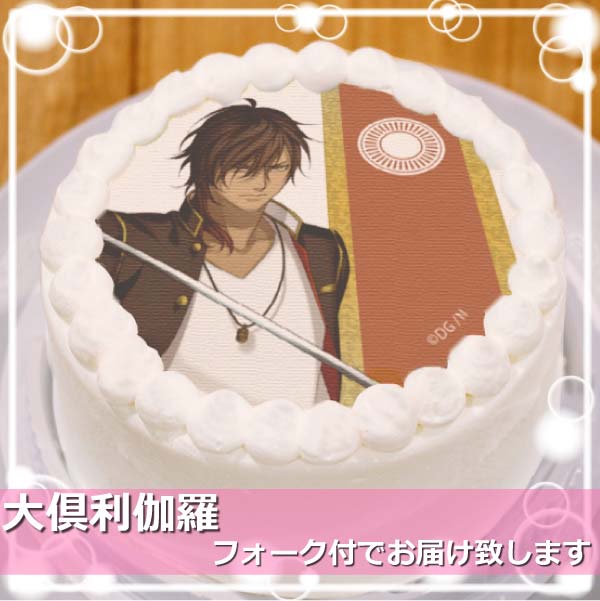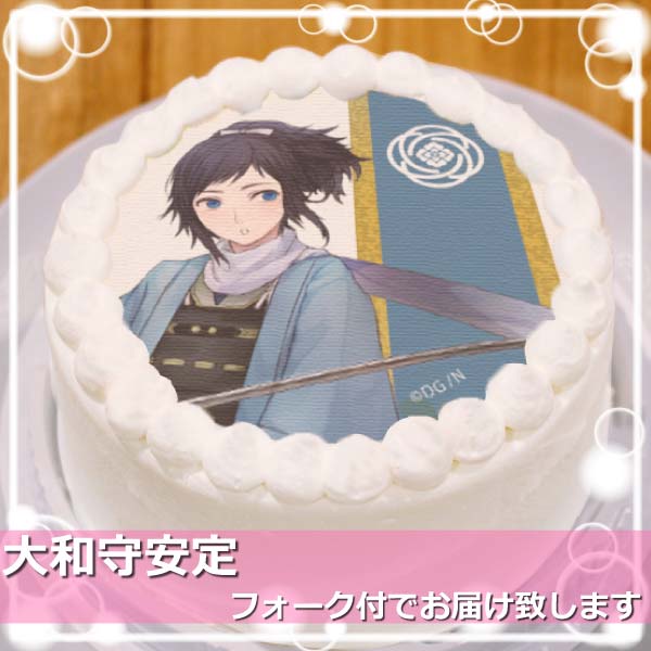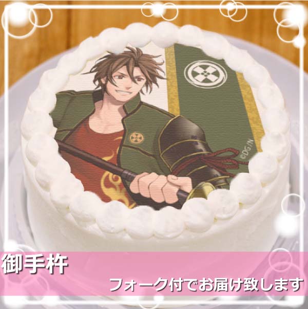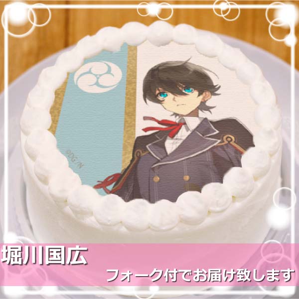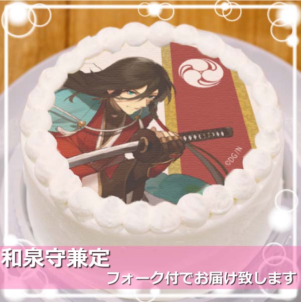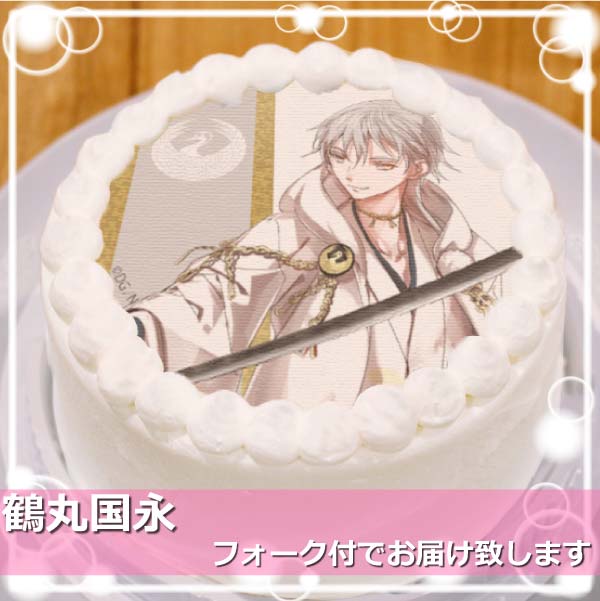 この商品は、鶴丸国永や大和守安定などの刀剣男士11振りがプリントされたオリジナルデザインのホールケーキとなっており、4号サイズなのでパーティーにぴったり。さらに、プリロール限定特典として注文した刀剣男士と同じ「紋」入りのケーキフォークが付属する。