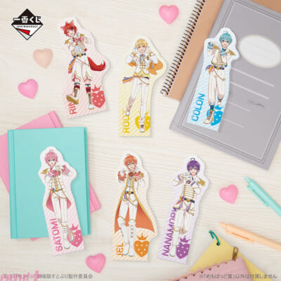 本商品は、動画配信サイトで活動中の2.5次元アイドルグループ「すとぷり」の一番くじです。2024年7月19日(金)より公開の『劇場版すとぷり はじまりの物語~Strawberry School Festival!!!~』を記念し、ぬいぐるみ、タオル、メモパッド、ラバーマスコット、アクリルジオラマをラインナップしました。