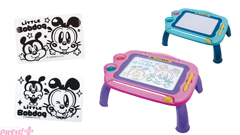 かわいらしい「リトルボブドッグ」のトレースフィルム2種類付きのおえかきデスク。本体カラーは「ピンク/ブルー」の全2種類。足部分は簡単に取外しが可能でボードとデスクを切り替えられます。カラフルな4色ボードで何度でも描いて、消して、楽しく遊べます♪