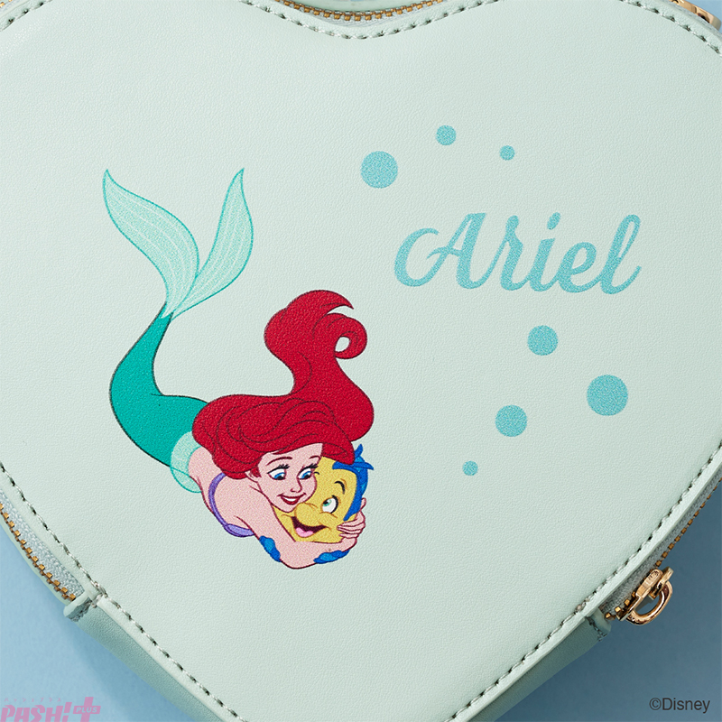 「アリエル」をイメージしたモチーフの大人気ハート型ショルダーバッグ、お財布、チャームの3アイテムがラインナップ。