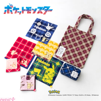 ピカチュウとチェックの組み合わせがこれからのシーズンにぴったり。タオルハンカチのピカチュウのアップリケ刺繡やモンスターボールのモチーフなど、さりげないワンポイントが気分を上げてくれそうです。実用性のあるトートバッグとポーチも展開します。