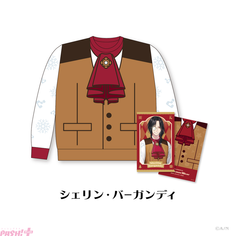 「にじさんじ Christmas Wear~KD Sweater Style~」グッズが登場! グッズラインナップは、セーター、アクリルスタンド、缶バッジの3種類。セーターには購入特典としてチェキ風カードが付属します。
