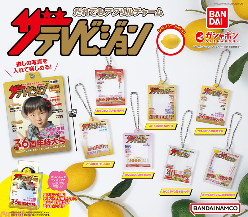 バンダイ ベンダー事業部は、写真を差し込むことで、だれでも「ザテレビジョン」(KADOKAWA発行 本社:東京都千代田区)の表紙を飾ることができるフレーム型アクリルチャーム『ザテレビジョン だれでもアクリルチャーム』(1回300円・税込、全7種)を2024年8月第2週より、全国のガシャポンバンダイオフィシャルショップ、玩具売場、量販店、家電店などに設置されたガシャポン自販機シリーズにて発売します。