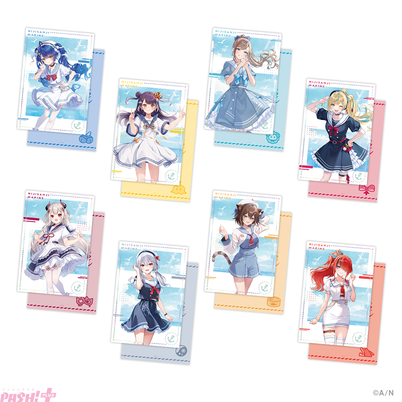 天宮こころ、海妹四葉、来栖夏芽、立伝都々、奈羅花、葉加瀬冬雪、文野環、レイン・パターソンの8名のにじさんじライバーが夏らしい爽やかなマリンスタイルで登場!