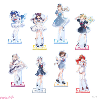 グッズラインナップは、撮りおろしビジュアルを使用したランダムポストカード、BIGアクリルスタンド、ステッカーセット、クリアファイル、マウスパッド。各ライバーのモチーフデザインを使用したアクリルキーホルダー、サコッシュを加えた計7種類です。