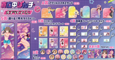 賞品は、真咲とりぶが水着姿で水鉄砲を構えている夏らしい描き下ろしイラストを使用したオリジナルグッズとなります。イラストを堪能できる特大タペストリーや、スマホを置ける便利なアクリルスマホスタンド、ミニキャラアクリルスタンドプレート、動画風フレームアクリルキーホルダー、缶バッジなどを多数展開。
