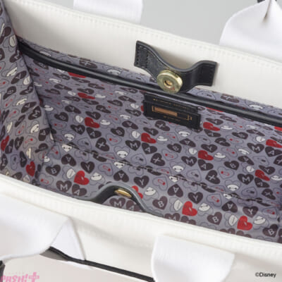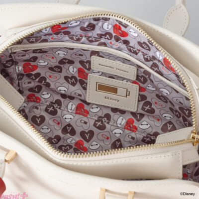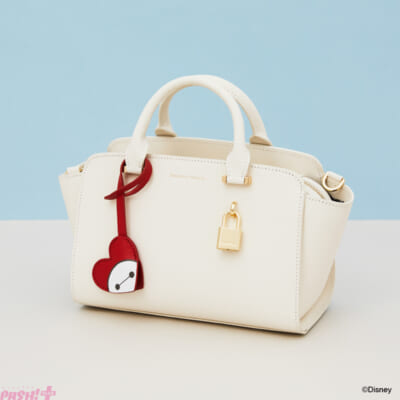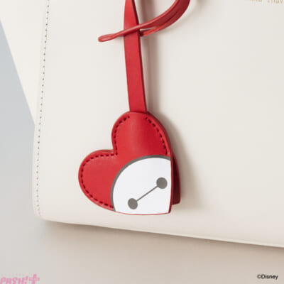 裏地には「ベイマックス」のバッテリー残数を示すアートが。「ベイマックス」のパワー状況をひっそりとウォッチングできるデザインに。ハートモチーフのチャームタグは「ベイマックス」の顔がデザインされていて、バッグのワンポイントとしても映えるアイテム。