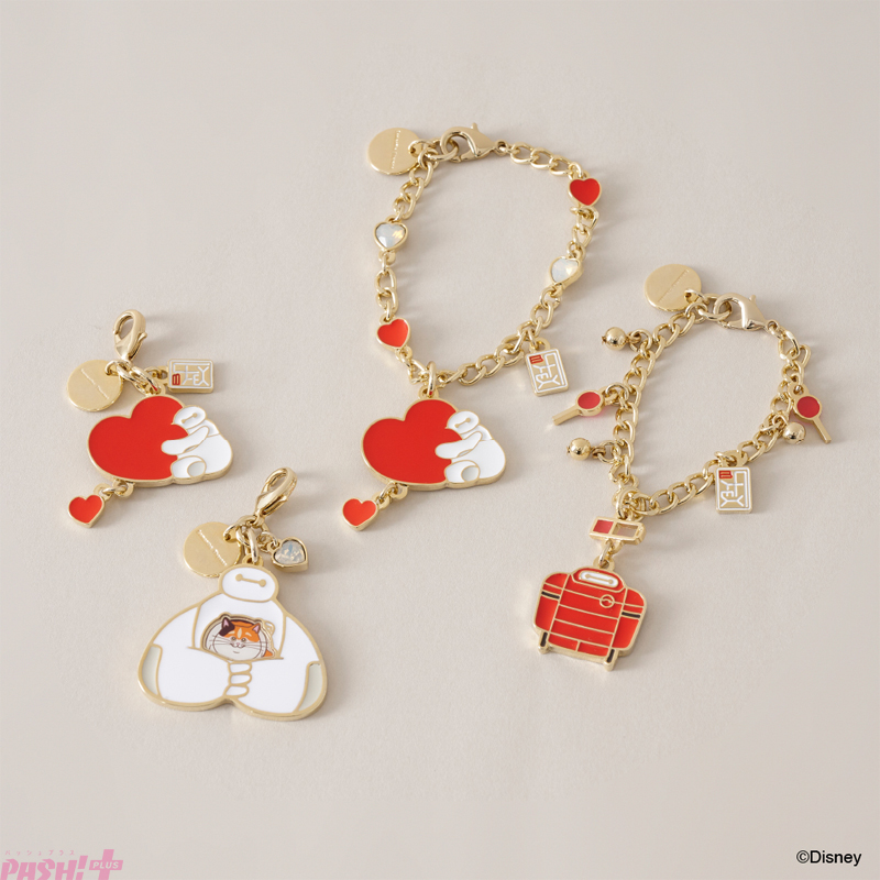 「ベイマックス」が「モチ」をギュッと抱きしめている様子やハートを抱きしめる「ベイマックス」、充電中の「ベイマックス」の姿をチャームにデザイン。ハートのビジューモチーフやバッテリーモチーフなど、チェーン部分の細かなデザインにも大注目。愛あふれるモチーフがあたたかい気持ちにしてくれる。同シリーズのバッグや小物との組み合わせも楽しんで。