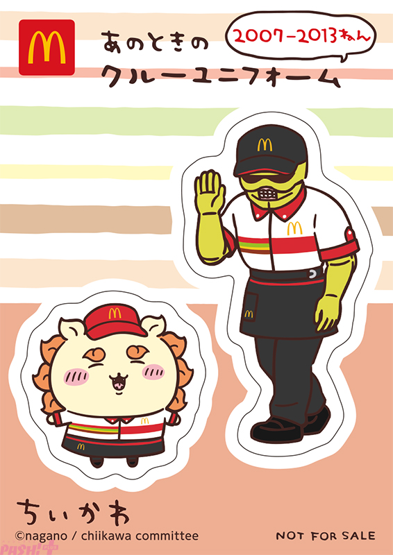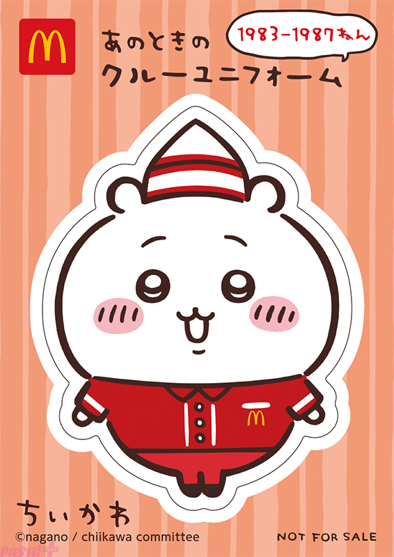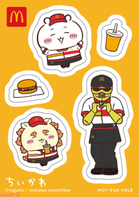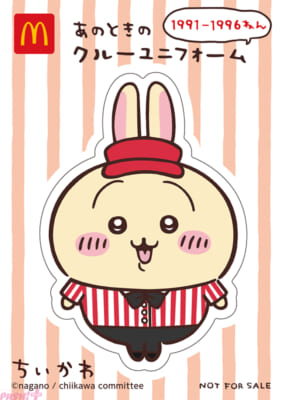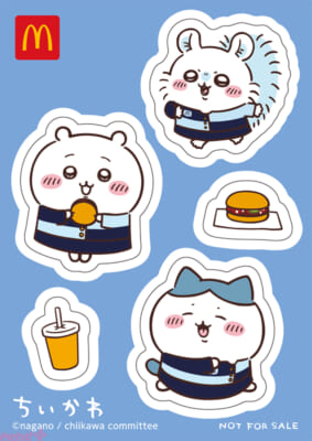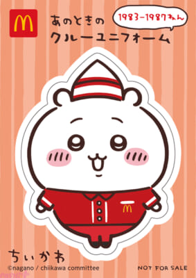 “ちいかわ”や”ハチワレ”、”うさぎ”を筆頭に、”モモンガ”や“ラッコ”などのキャラクターたちが歴代クルーユニフォームを着たマクドナルドオリジナルデザインのシールセットです。
