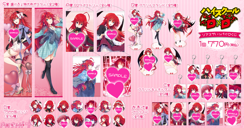 KADOKAWAは、運営するオンラインくじサービス「くじ引き堂」において、富士見ファンタジア文庫の人気作品『ハイスクールD×D』の原作イラストを使用した豪華賞品が手に入る<『ハイスクールD×D』リアスがいっパイ(ハート)くじ>を、2024年8月29日(木)17時より販売します。