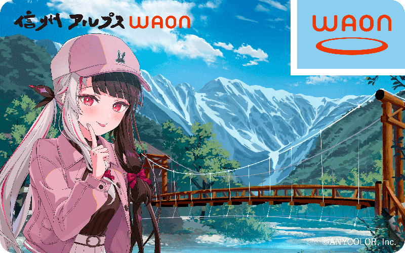 コラボレーションカード3枚目は「信州アルプスWAON」。上高地を旅する「夜見れな」を撮りおろしたオリジナルデザインカードとなります。お買物いただいたご利用金額の一部が、長野県の美しく豊かな自然環境と魅力的な景観づくりを応援します。