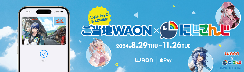イオンリテールは8月29日(木)より、イオンの電子マネー「WAON」とANYCOLORが運営するVTuber/バーチャルライバーグループ「にじさんじプロジェクト」とのコラボレーションカードを、Apple PayのWAONにて期間限定で発行します。